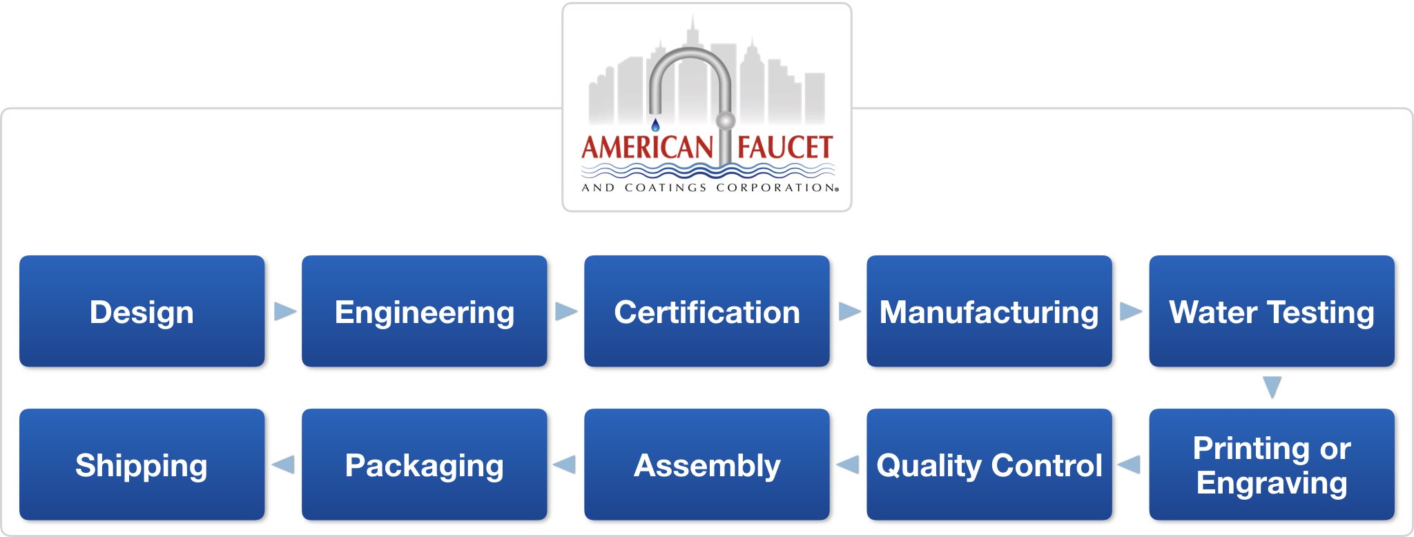 Within our manufacturing center we provide comprehensive services: design, engineering, certification, manufacturing, water testing, printing or laser engraving, quality control, assembly, custom packaging, and shipping.